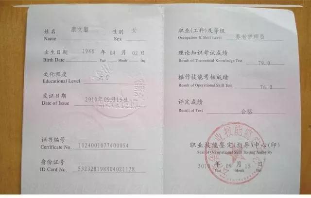 所有参加培训的学员通过考核后,可获得由人社局颁发的国家级鉴定的《初级养老护理员资格证书》。该证书全国通用,网上可查询,参与养老服务的人员必须持有该证。